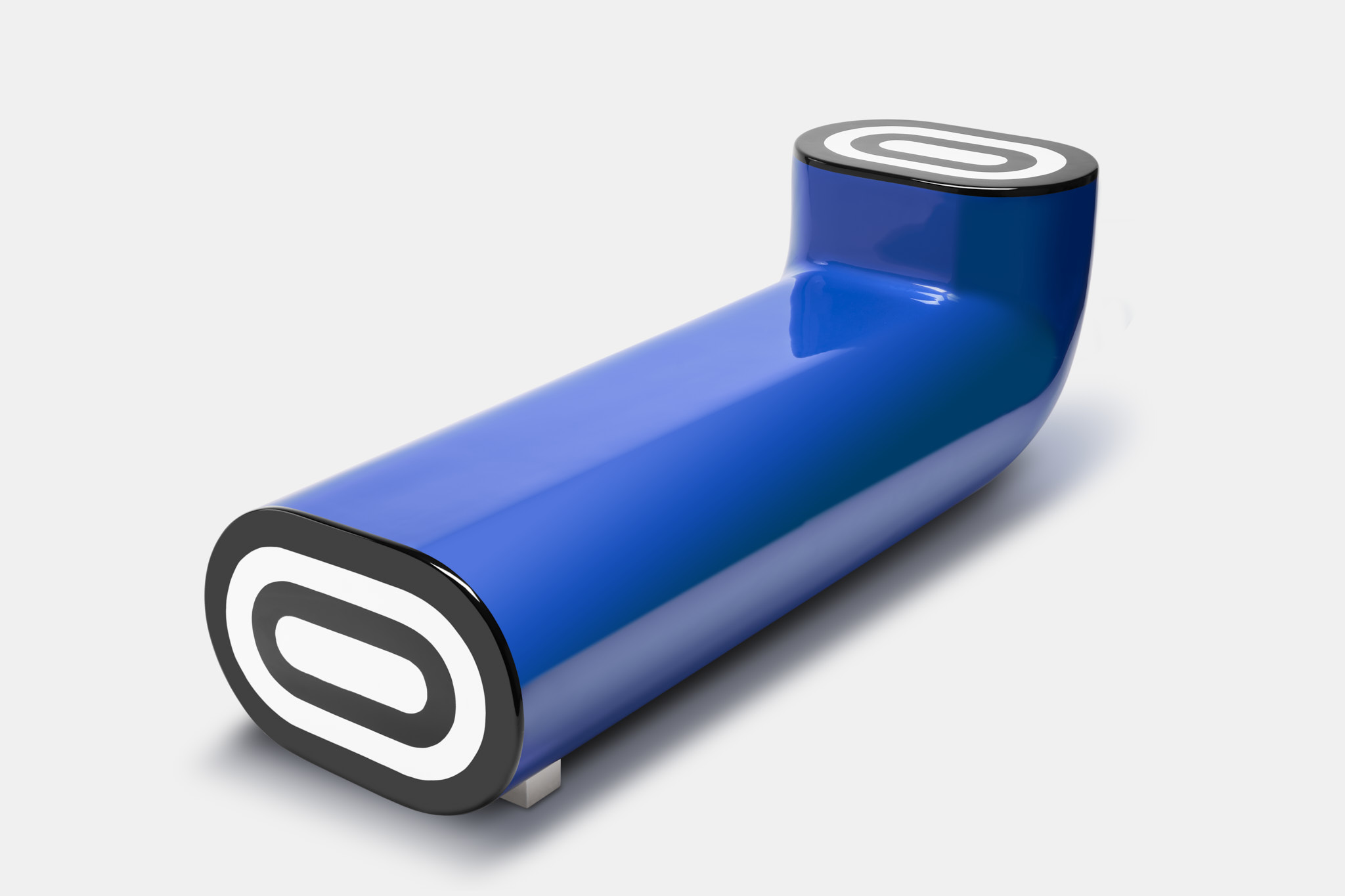 A key focus was to make sure the graphics felt naturally integrated with the form, so the two-dimensional and three-dimensional elements worked seamlessly together. This was achieved by avoiding the usual transfer foils and instead using a traditional masking-and-painting process. Layers of paint were built up through sanding and finished with polyurethane coats. Once dry, the surface was smoothed by hand, allowing the colours and patterns to appear as though fused into the fibre body of the bench.